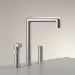 CEA Cartesio Bateria kuchenna 3-otworowa z obrotową i wyciąganą wylewką, z automatycznym przełącznikiem Satin Stainless Steel CAR08S