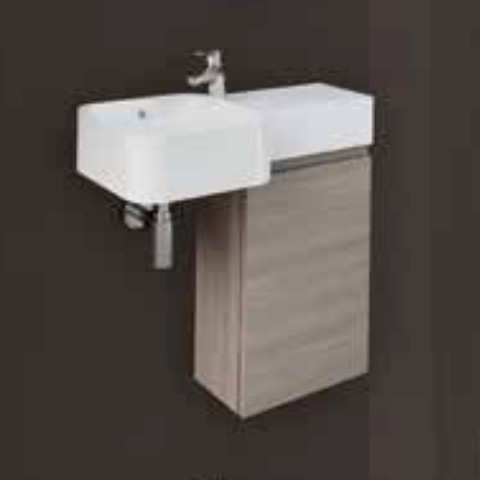 Rak Ceramika PETIT Zestaw Umywalka z blatem z prawej 77x36 biały połysk+Szafka podumywalkowa 40x21 Grey elm PETWB47700AWHA+JOYWH040EGY