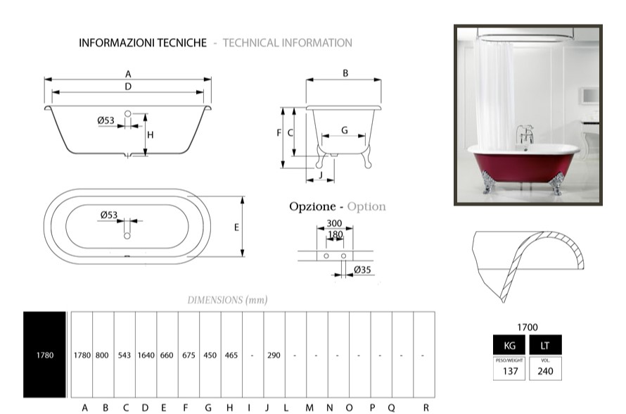 Nóżki złote, nóżki niklowe, nóżki niklowe matowe doliczają 300,00 euro do ceny wanny