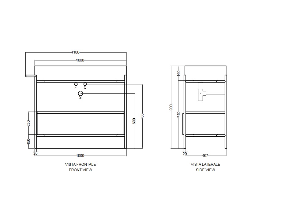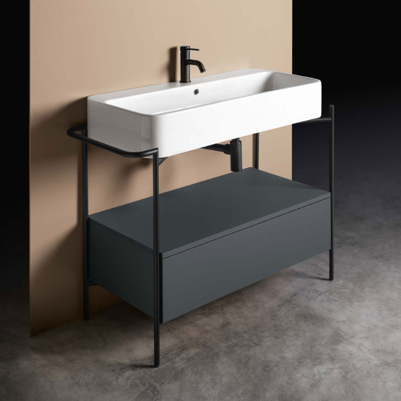 Axa COSA Stelaż podumywalkowy 110 cm z umywalką z korkiem Click-clack i szufladą Czarny mat/Grey Matt S8640007+MSC115GM+8640001+AF0015