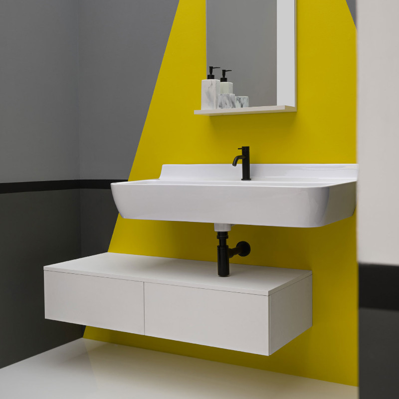 Axa RADICI Umywalka ścienna/stawiana na blat 100x48 cm z korkiem Click-clack Biały połysk 8720001+AF0015