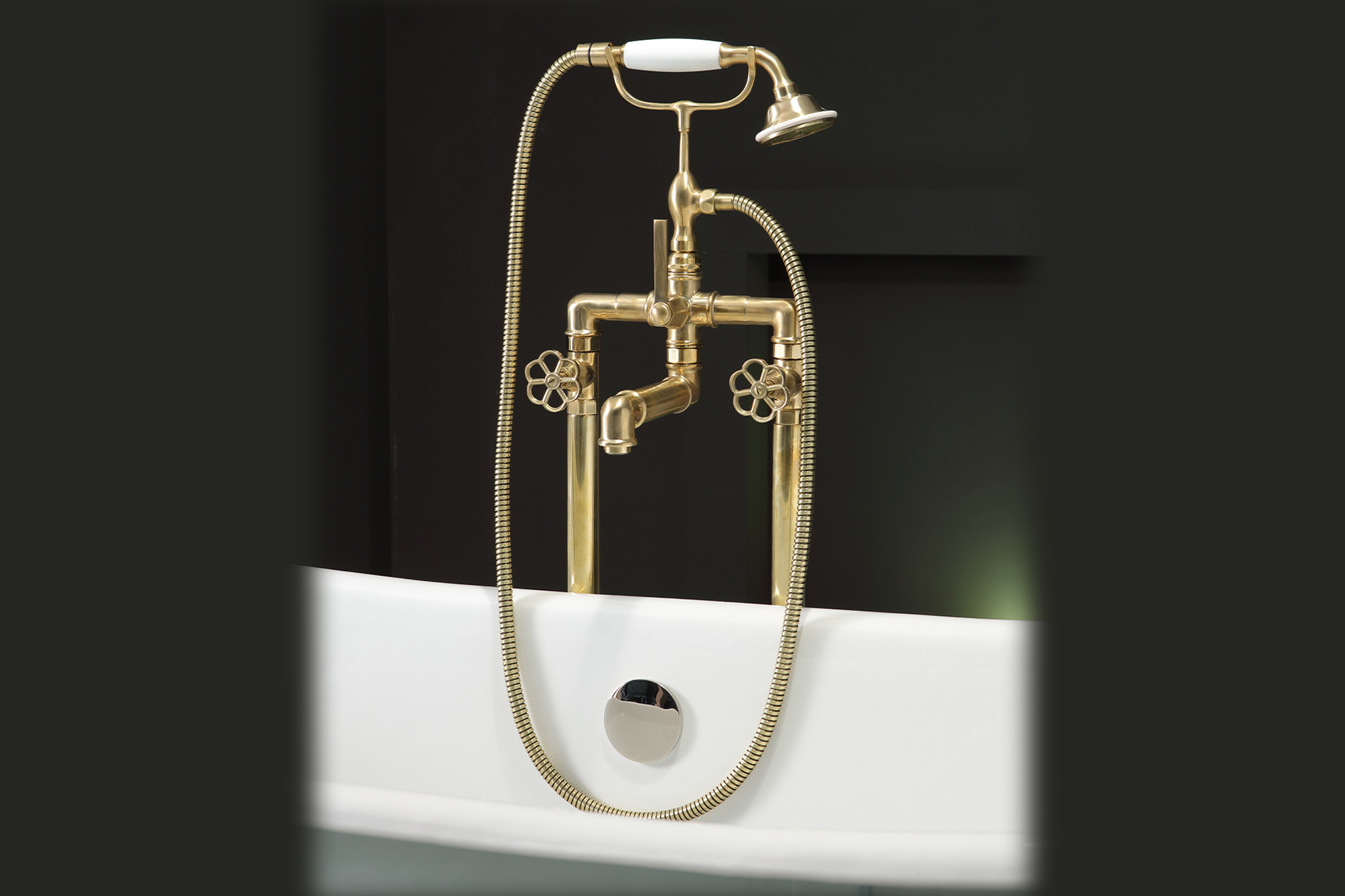 Bleu Provence Bateria wannowa wolnostojąca ze słuchawką i wężem brass RVMTM311ON
