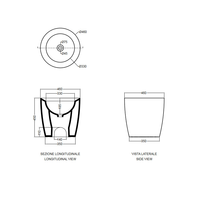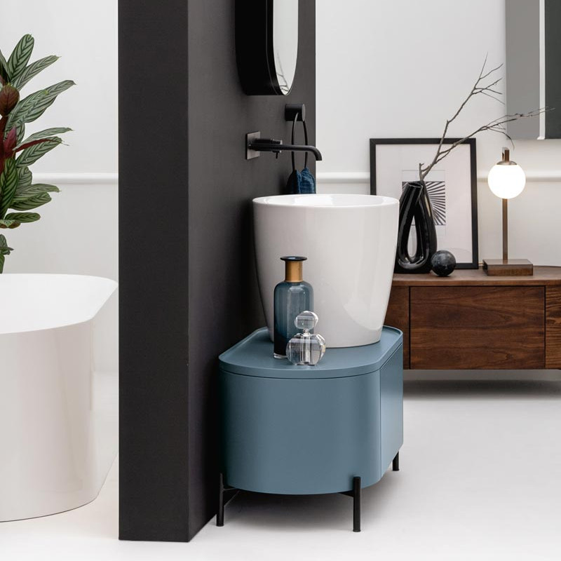 Axa KRACKLITE Umywalka stawiana na blat ∅ 46 cm z korkiem Click-clack z komodą owalną Biały połysk/Avio 8050001+AF0015+200M18