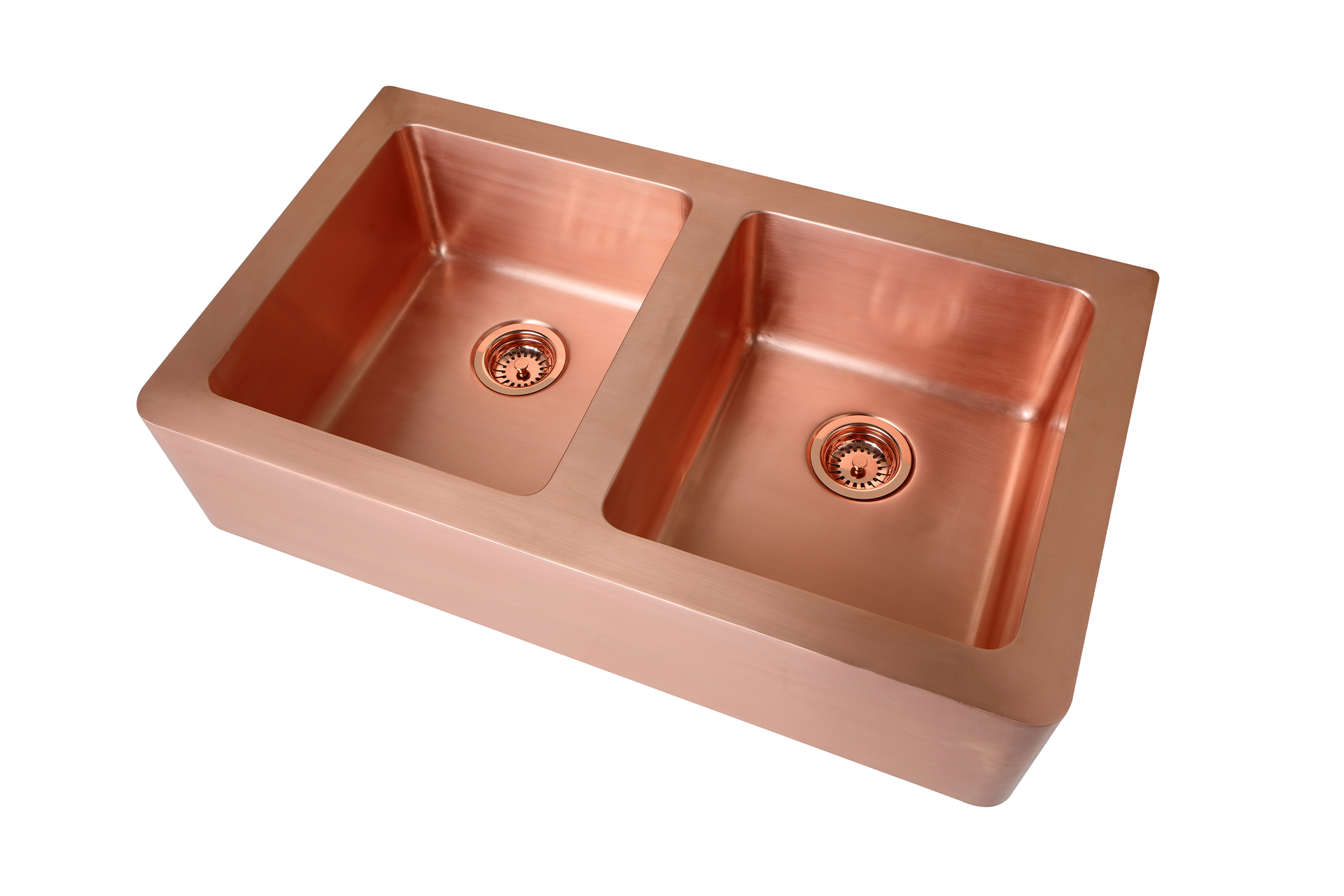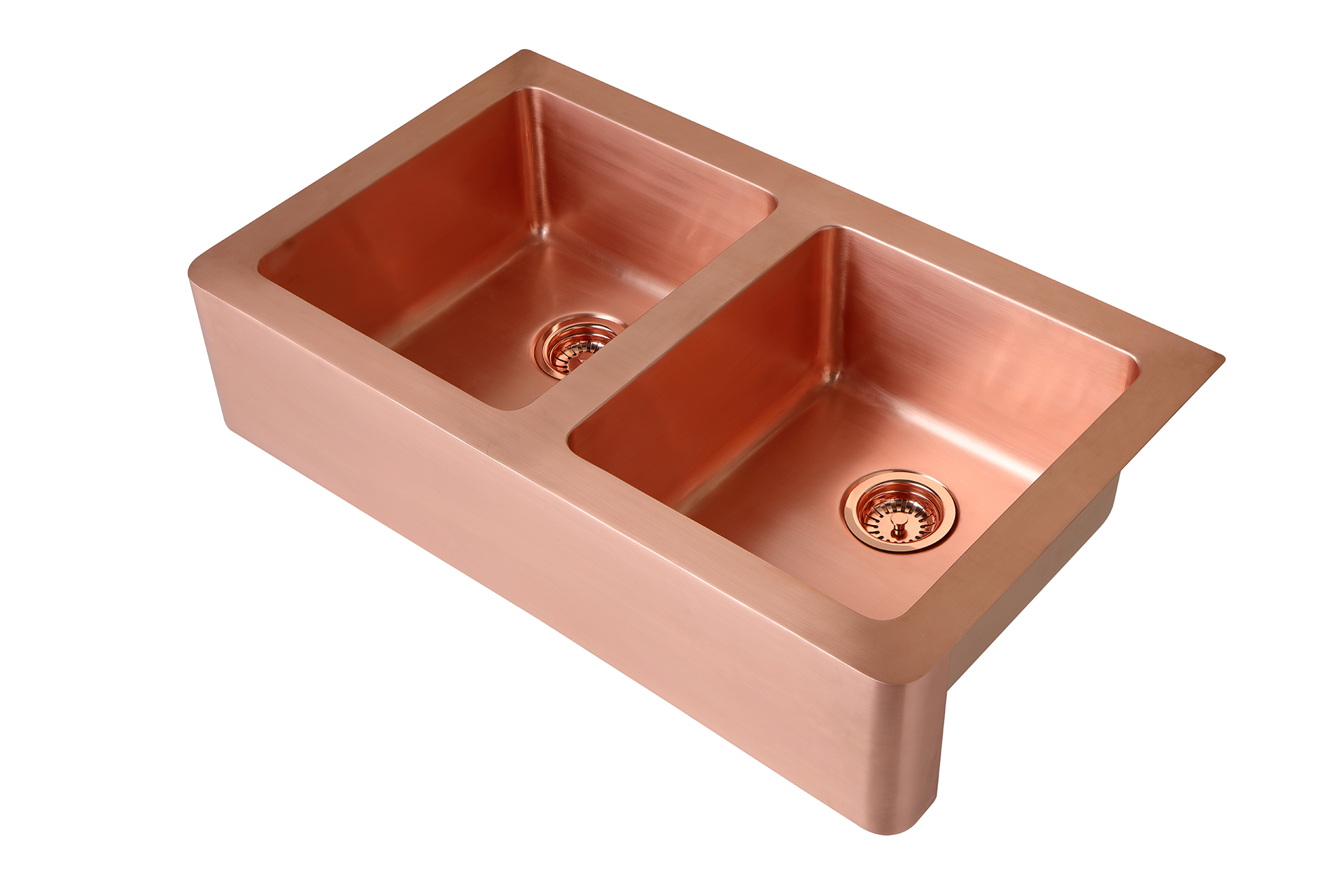 Bleu Provence Livia Zlew kuchenny podwójny półblatowy 91,5x53,5 brushed copper LVCP11BC