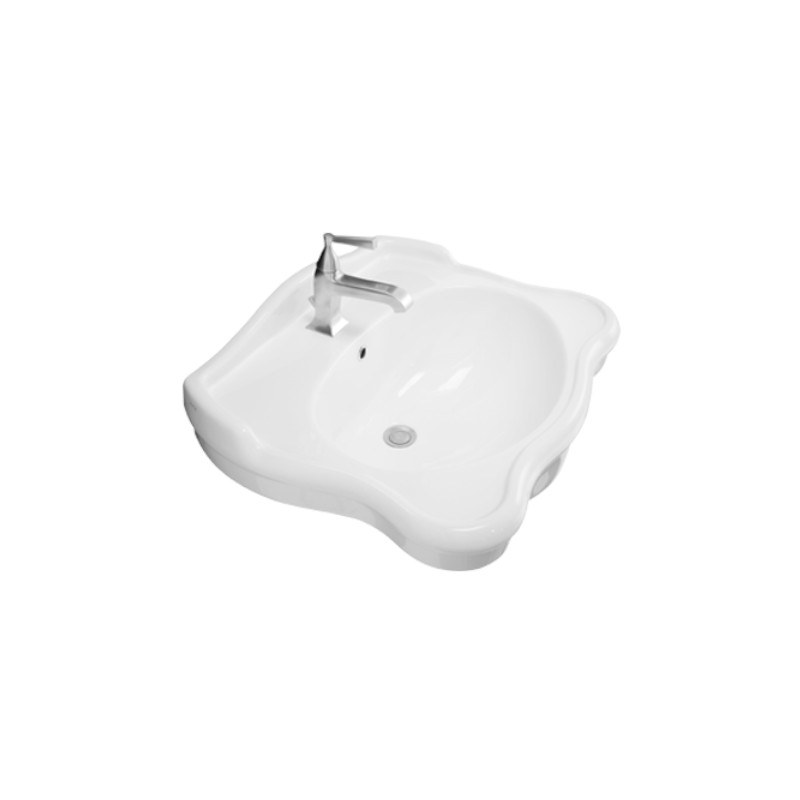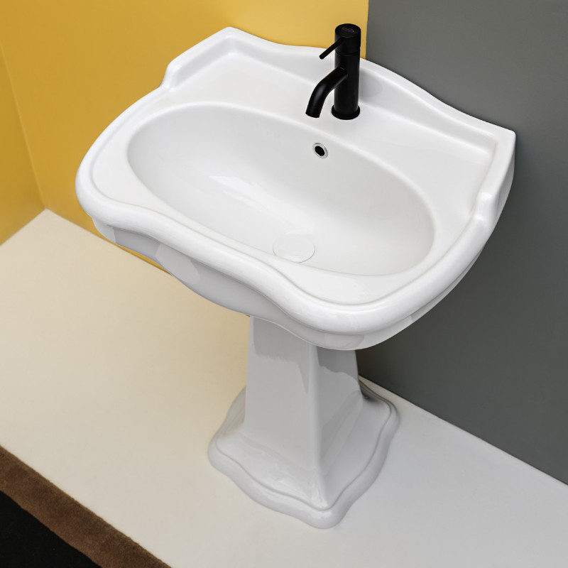 Axa Contea Umywalka ścienna 64x48 cm z korkiem Click-clack i postumentem Biały połysk 0603101+0604001+AF0015