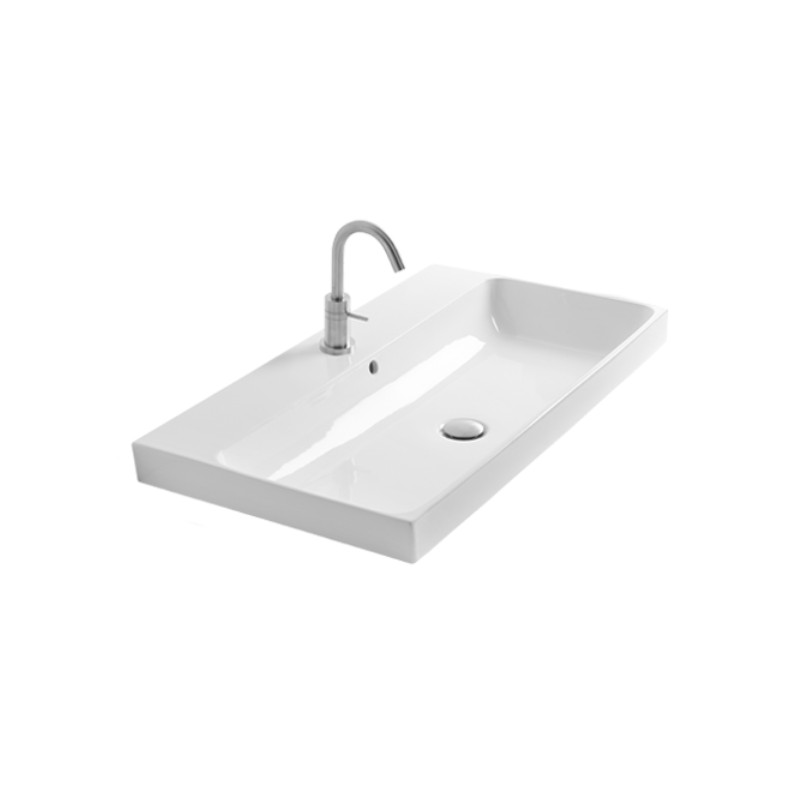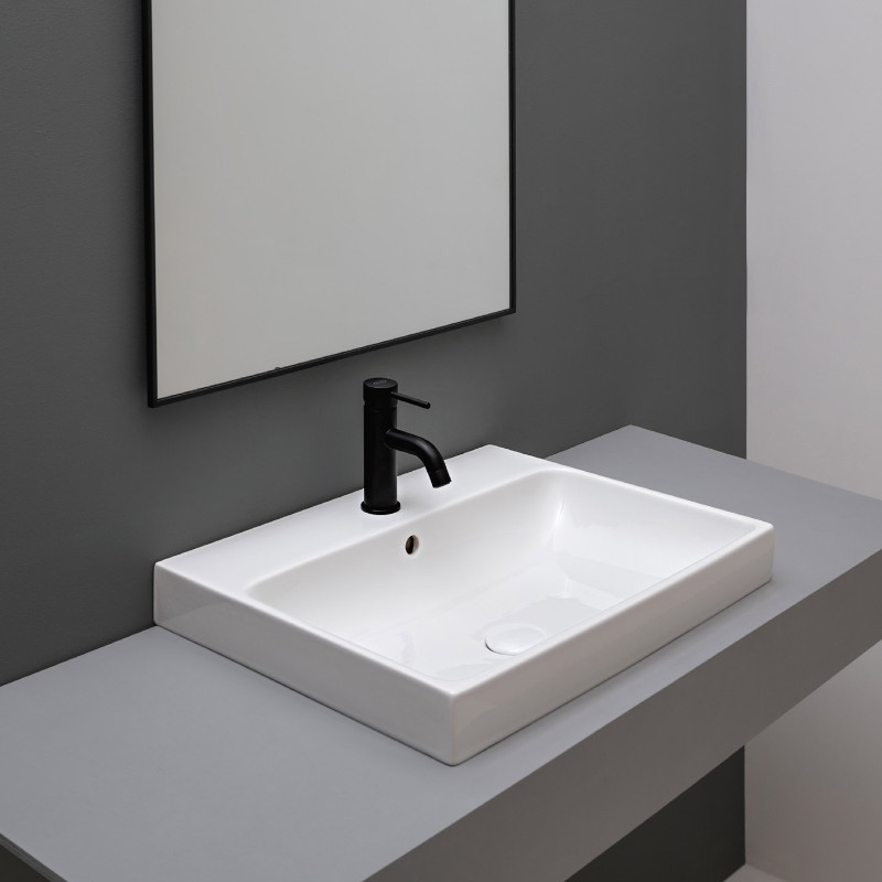 Axa Normal Umywalka ścienna/stawiana na blat 60x45 cm z korkiem Click-clack i syfonem Biały połysk WS11101F+AF0015+SI020