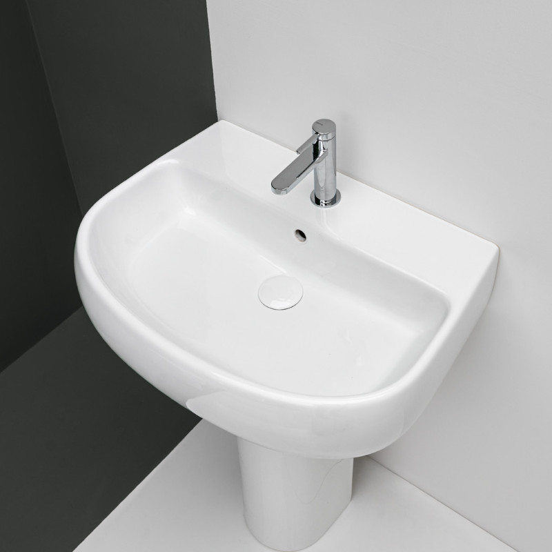 Axa Cinque Umywalka ścienna/stawiana na blat 63x47 cm z korkiem Click-clack i syfonem Biały połysk 364601+SI020+AF0015