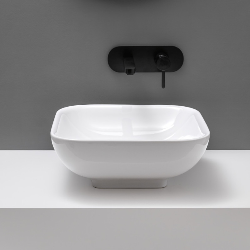 Axa Ciotola Umywalka stawiana na blat 40x40 cm i korkiem Click-clack z syfonem Biały połysk 1508001+AF0015+SI020