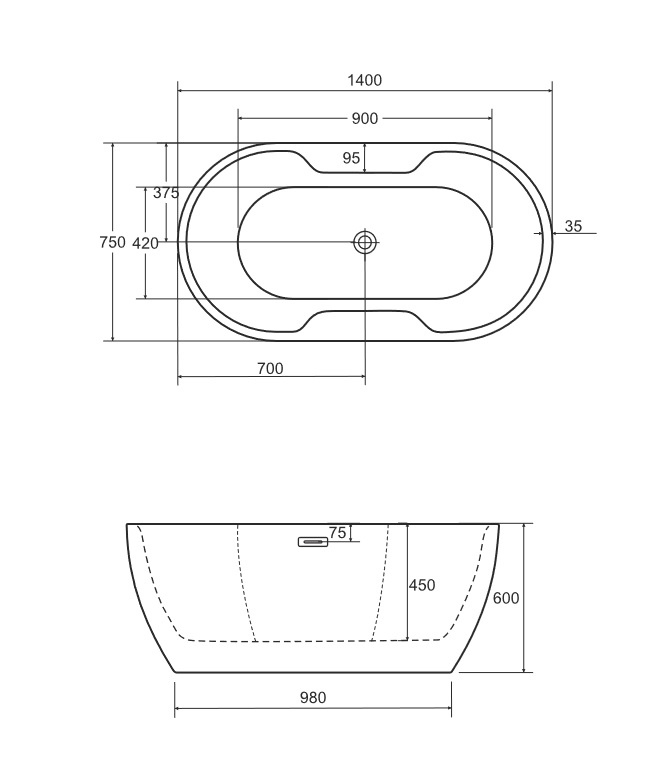 Besco Navia Wanna Wolnostojąca z przelewem i syfonem 140x75 cm biały/chrom WAS-140-N