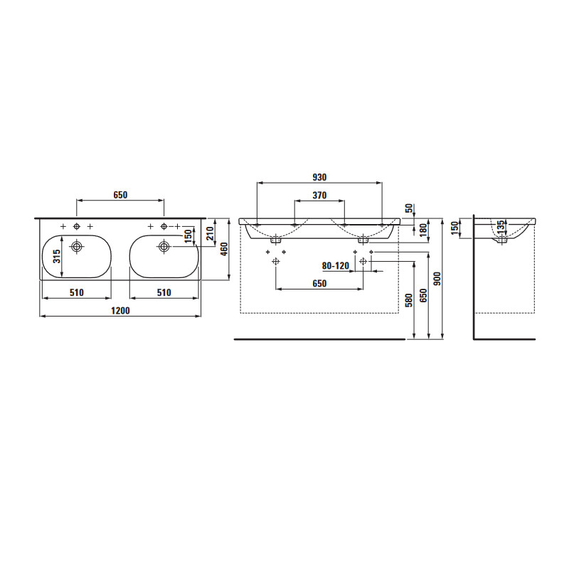 Laufen Lua Umywalka ścienna podwójna 120x46 cm biała H 814081 000 104 1
