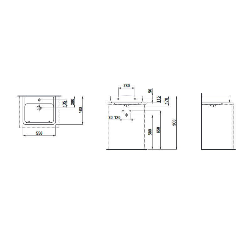Laufen Pro A Umywalka ścienna 55x48 cm biała H 817951 000 104 1