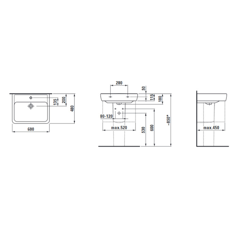 Laufen Pro A Umywalka ścienna 60x48 cm biała H 818952 000 104 1