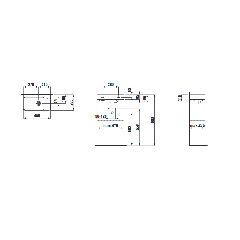 Laufen Pro S Umywalka ścienna 48x28 cm biała H 815954 000 104 1