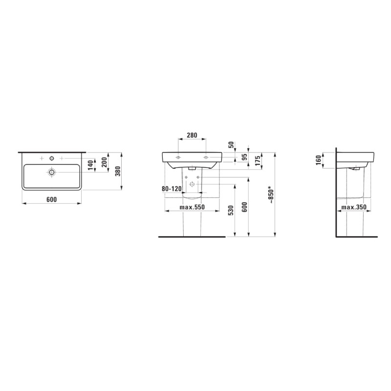 Laufen Pro S Umywalka ścienna 60x38 cm biała H 818959 000 104 1