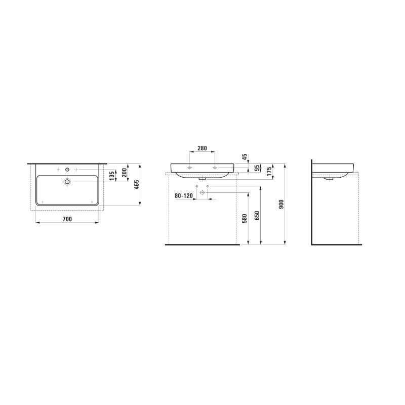 Laufen Pro S Umywalka ścienna 70x46,5 cm biała H 816967 000 104 1