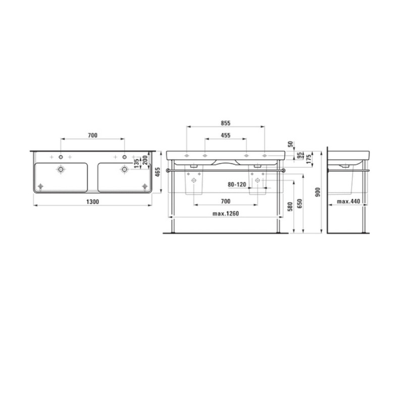 Laufen Pro S Umywalka ścienna dwukomorowa 130x46,5 cm biała H 814968 000 104 1