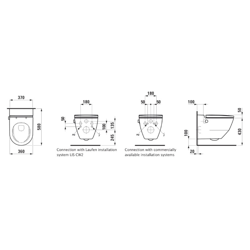 Laufen Navia Miska myjąca ścienna 36x58 cm Rimless w komplecie z wolno opadającą deską WC wykonaną z Duroplastu biała H 820601 400 000 1
