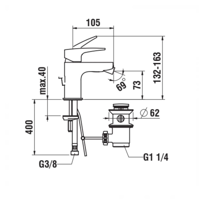 Laufen Laurin Bateria bidetowa jednouchwytowa z korkiem automatycznym Chrom HF 50071 010 000 0