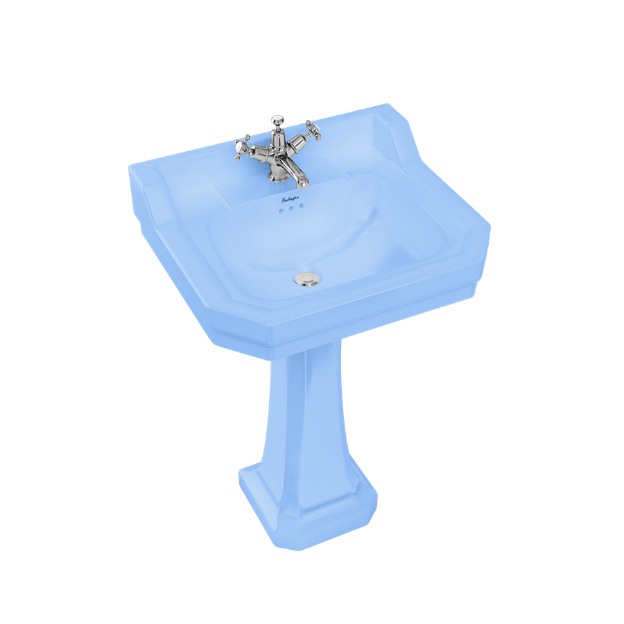 Burlington Bespoke Umywalka ścienna jednootworowa z korkiem klik klak 56x47 z postumentem bez baterii Enchanted Blue B41THENCH+P1ENCH+W11