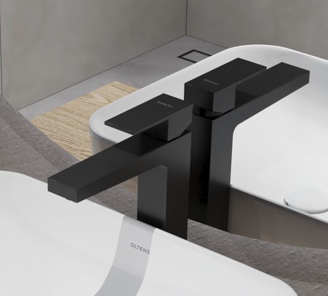 Oltens Gota Bateria umywalkowa stojąca wysoka czarny mat 32401300
