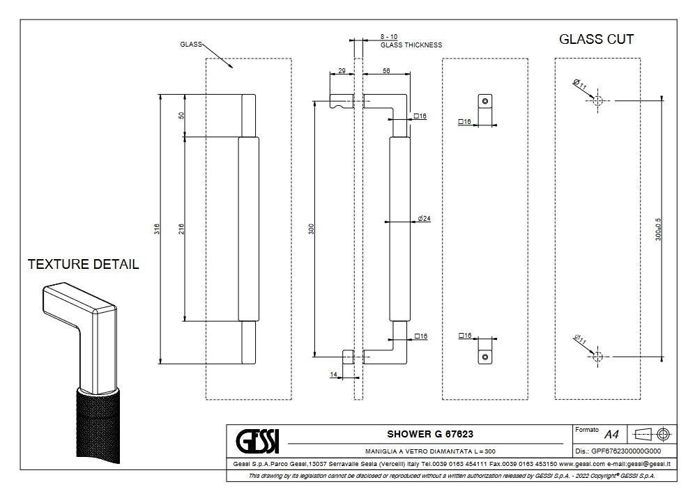 Gessi Diamantato Uchwyt do drzwi prysznicowych 300 mm Chrom 67623.031