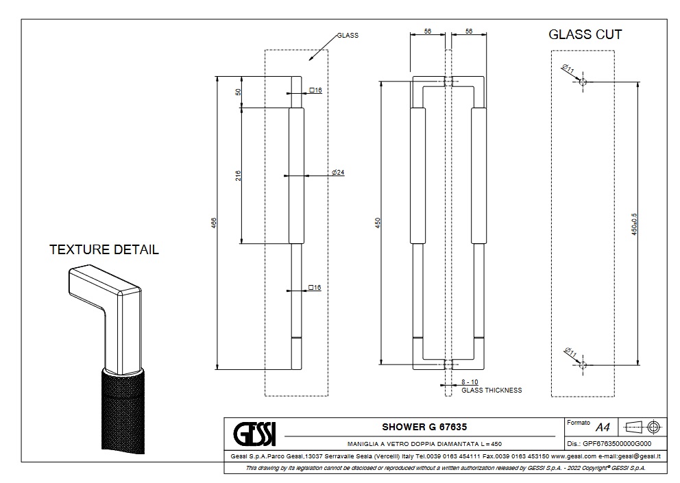 Gessi Diamantato Podwójny uchwyt do drzwi prysznicowych 450 mm Chrom 67635.031