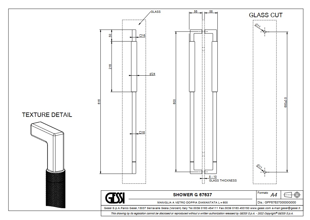 Gessi Diamantato Podwójny uchwyt do drzwi prysznicowych 600 mm Chrom 67637.031