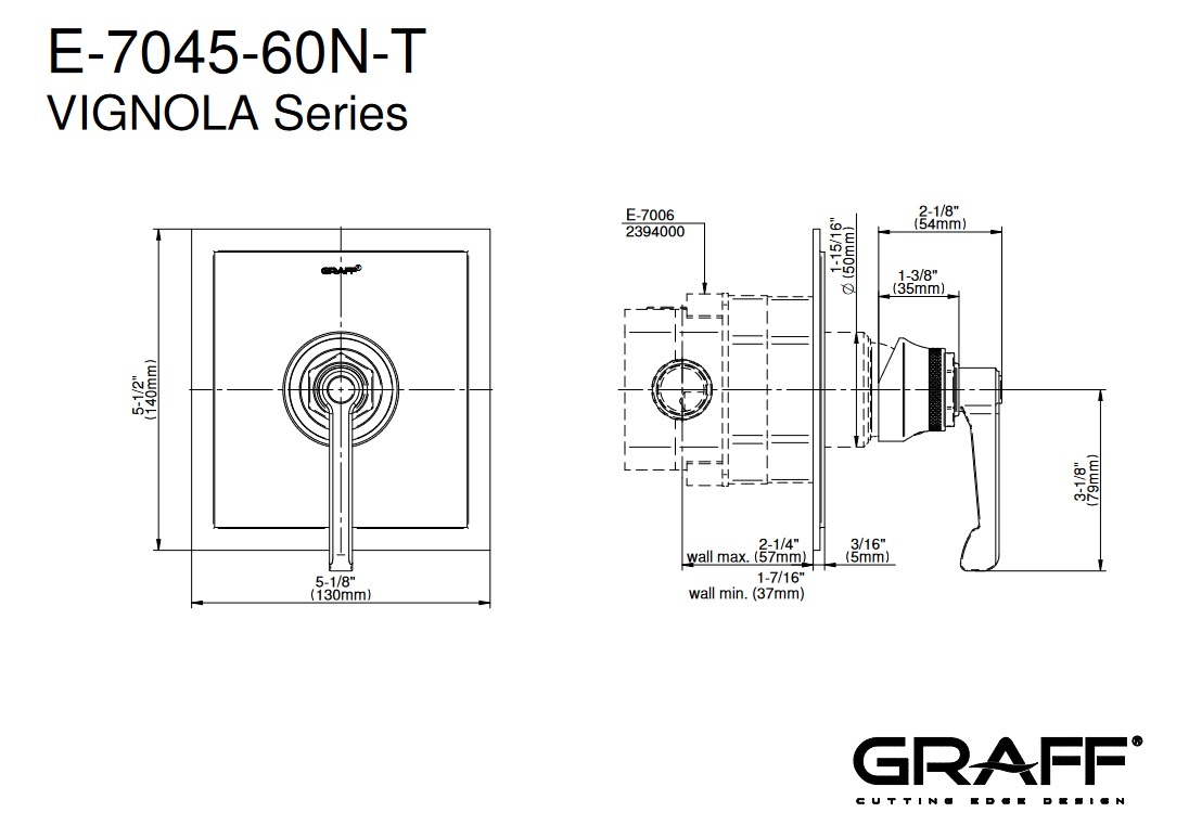 Graff Vignola Bateria natryskowa podtynkowa jednouchwytowa - element zewnętrzny Chrom E-7045-LM60N-T