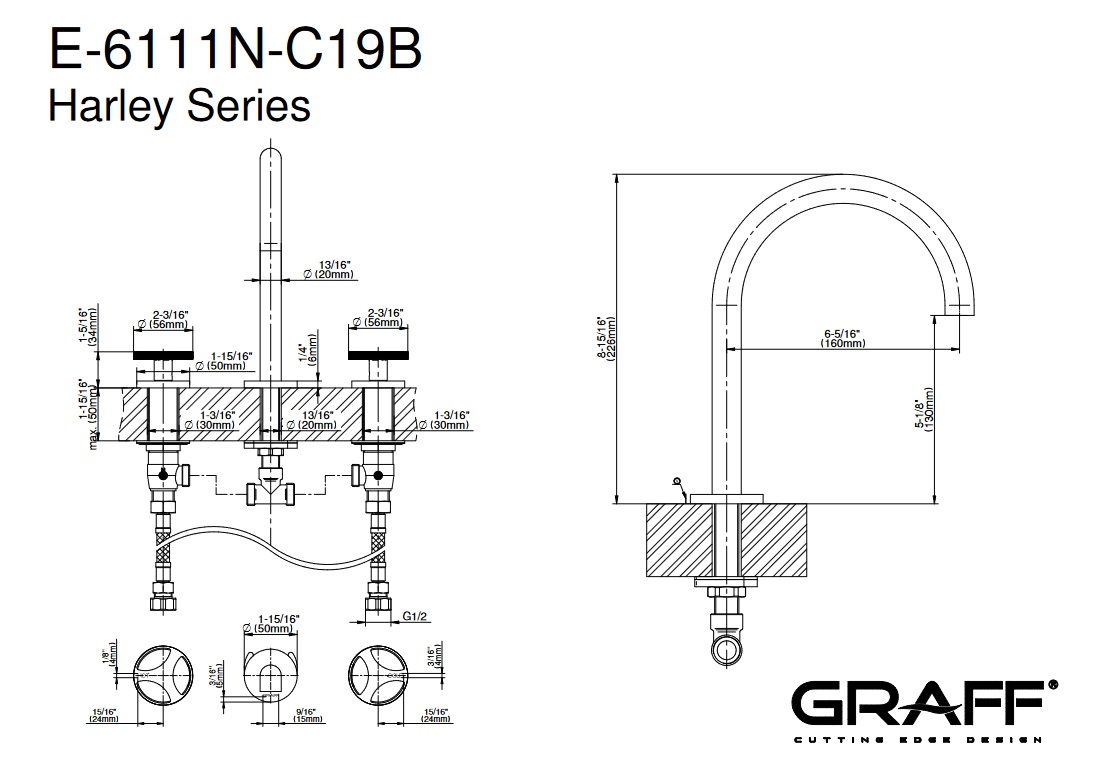 Graff Harley Bateria umywalkowa 3-otworowa Chrom E-6111N-C19B