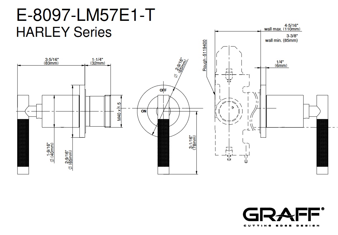 Graff Harley Zawór odcinający podtynkowy - element zewnętrzny Chrom E-8097-LM57E1-T