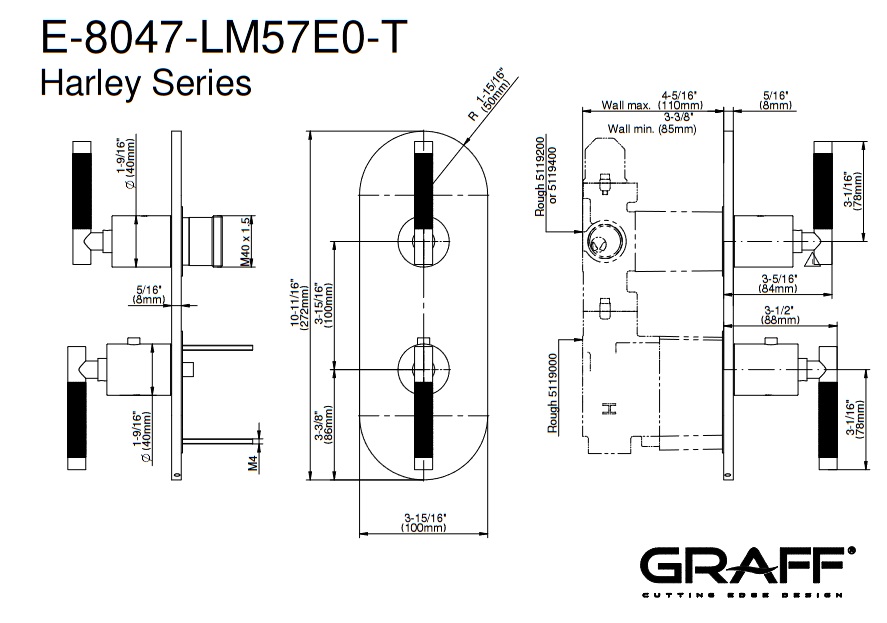 Graff Harley Bateria natryskowa podtynkowa 2-uchwytowa - element zewnętrzny Chrom E-8047-LM57E0-T
