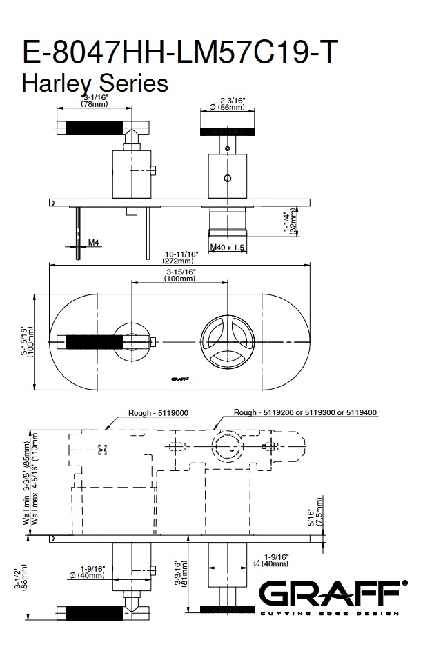 Graff Harley Bateria natryskowa podtynkowa 2-uchwytowa - element zewnętrzny Chrom E-8047HH-LM57C19-T