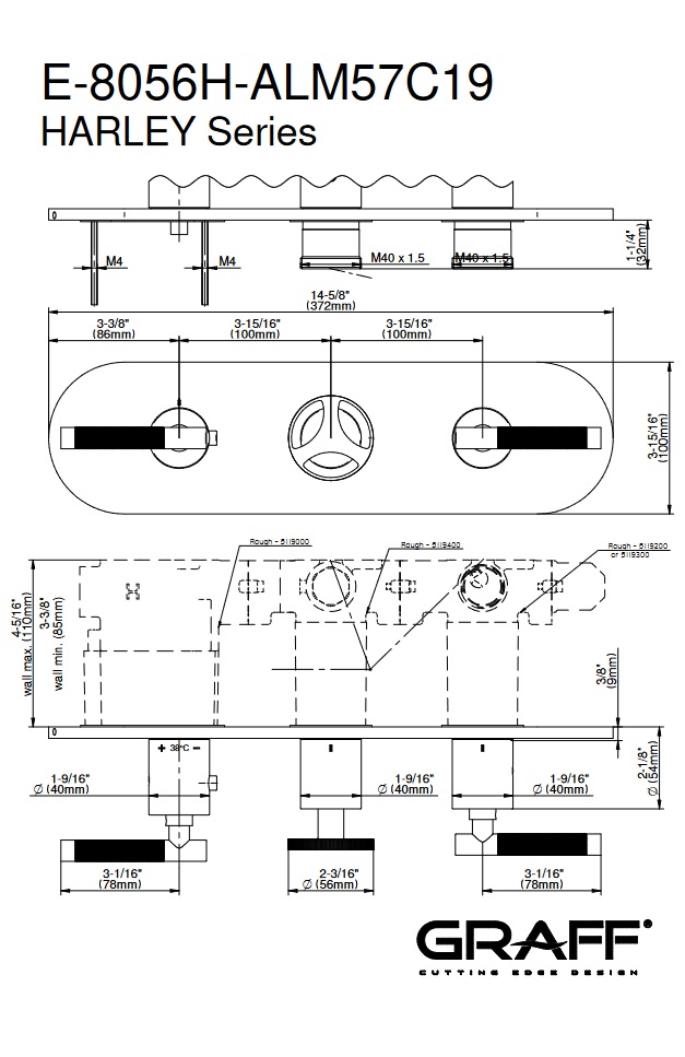 Graff Harley Bateria natryskowa podtynkowa 3-uchwytowa - element zewnętrzny Chrom E-8056HH-ALM57C19-T
