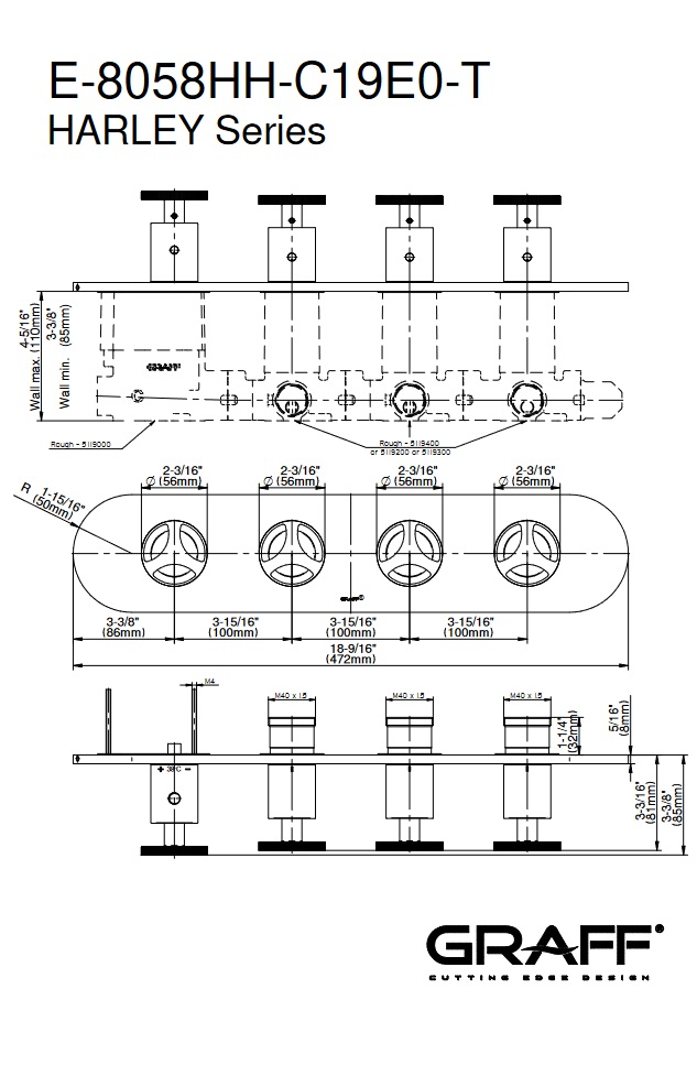 Graff Harley Bateria natryskowa podtynkowa 4-uchwytowa - element zewnętrzny Chrom E-8058HH-C19E0-T