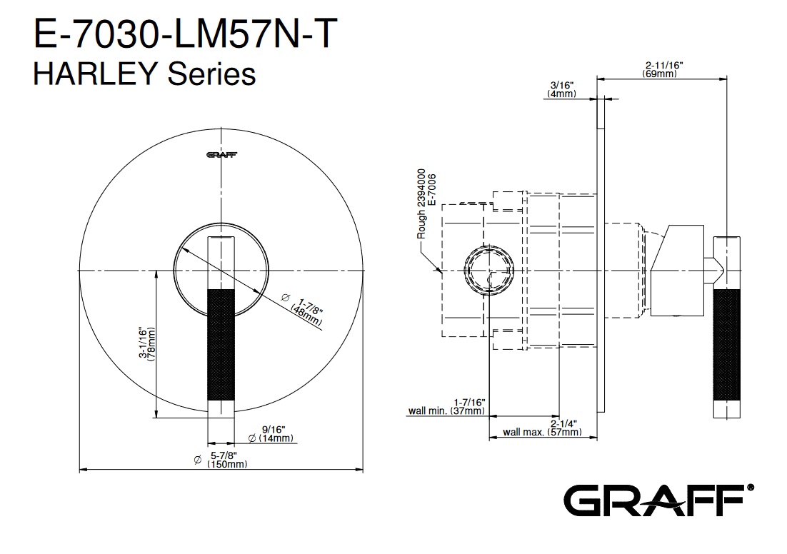 Graff Harley Bateria natryskowa podtynkowa - element zewnętrzny Chrom E-7030-LM57N-T