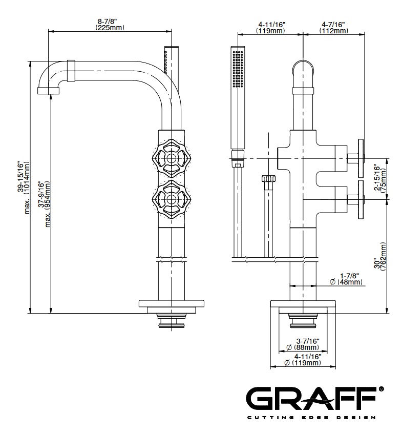 Graff Vintage Bateria wannowa wolnostojąca z zestawem prysznicowym Chrom E-11354-C18B-T