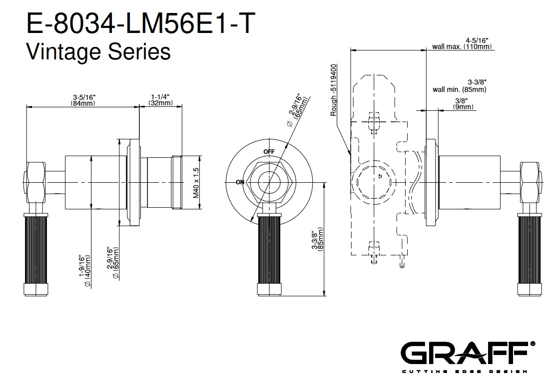 Graff Vintage Zawór odcinający podtynkowy - element zewnętrzny Chrom E-8034-LM56E1-T