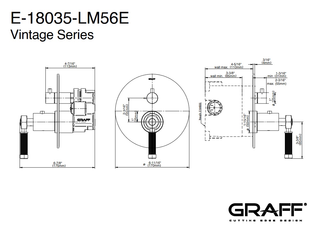 Graff Vintage Zawór termostatyczny, odcinający podtynkowy - element zewnętrzny Chrom E-18035-LM56E-T