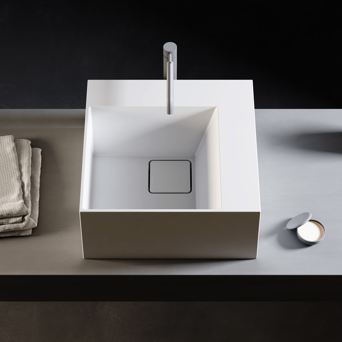 Relax Design "L" Series Umywalka stawiana 42x42 z korkiem white matt LSERIESL1SLX01MATT