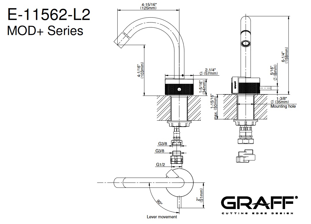 Graff MOD+ Bateria bidetowa jednootworowa Chrom E-11562-R1-L1