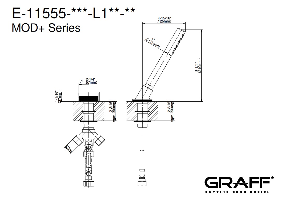 Graff MOD+ Zestaw prysznicowy nablatowy 2-otworowy Chrom E-11555-R2-L1