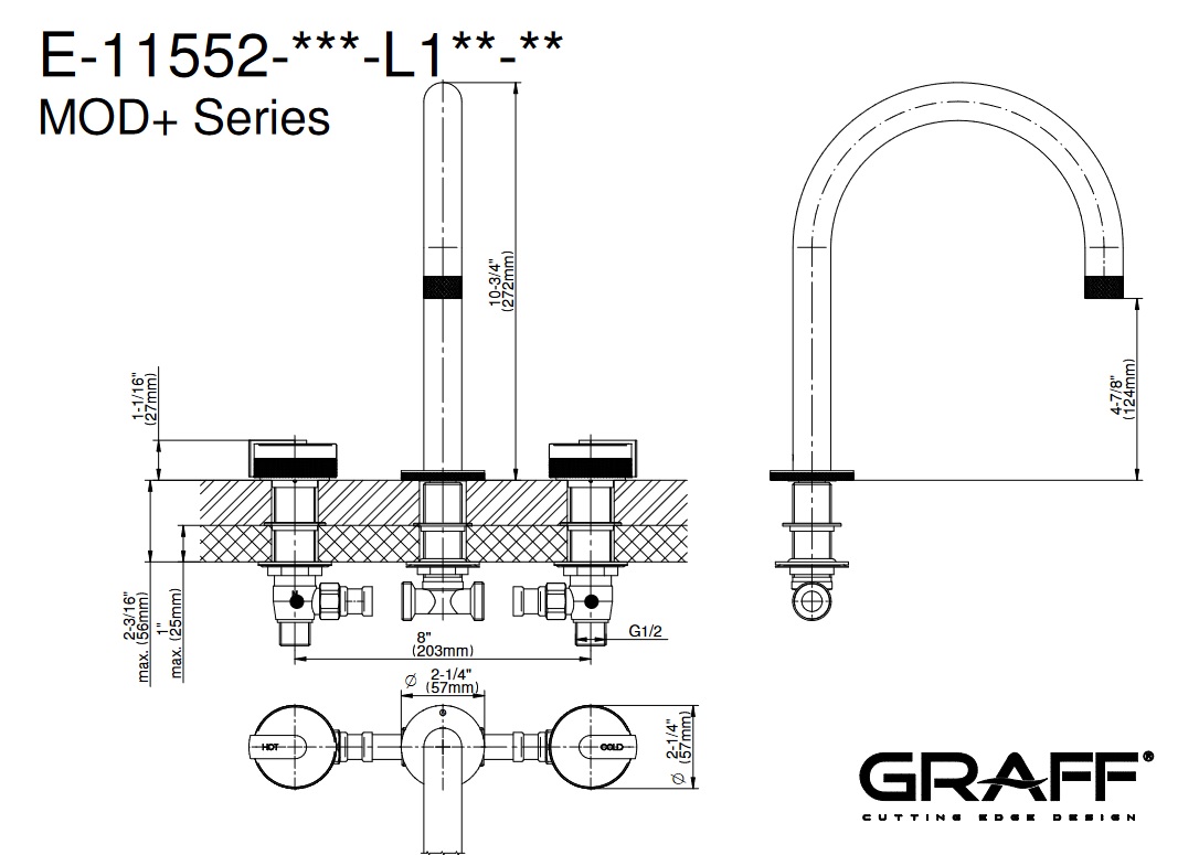 Graff MOD+ Bateria wannowa 3-otworowa bez zestawu prysznicowego Chrom E-11552-R2-L1