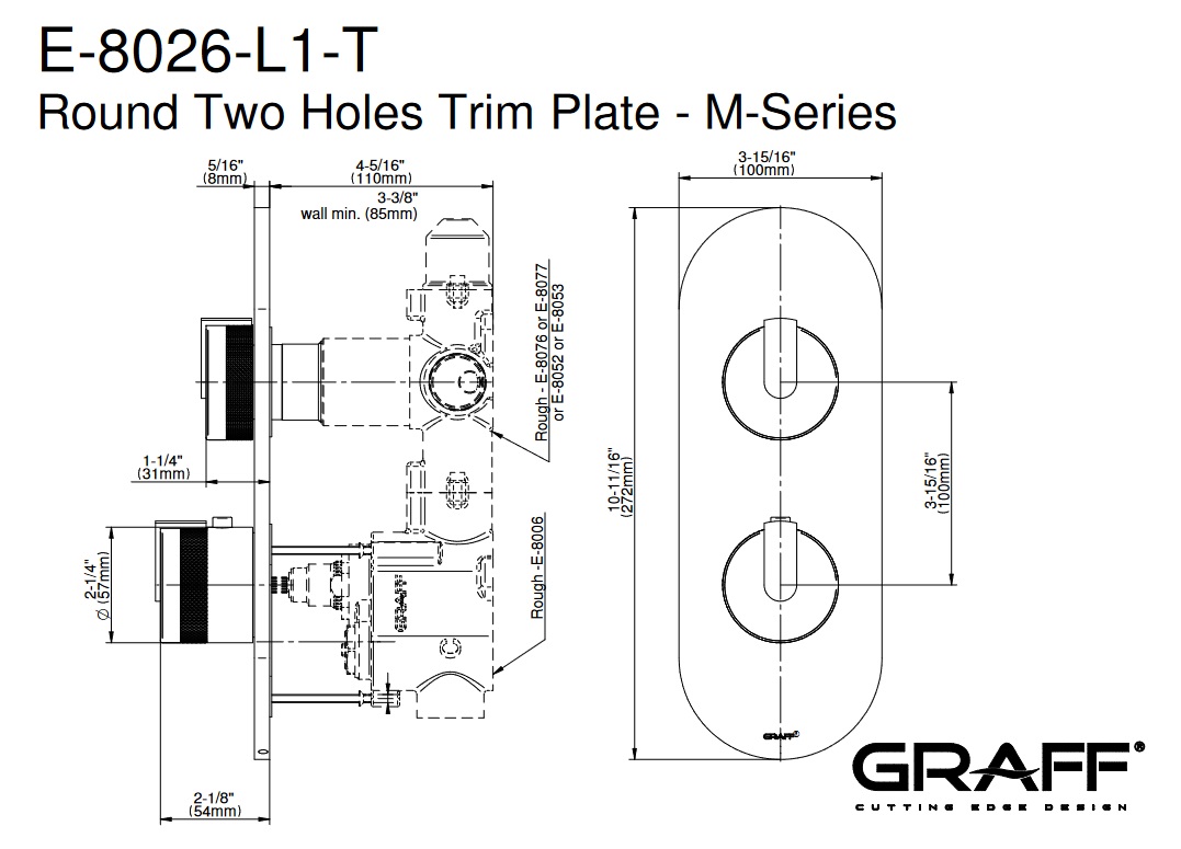 Graff MOD+ Bateria natryskowa termostatyczna podtynkowa - element zewnętrzny Chrom E-8026-R1-L1-T