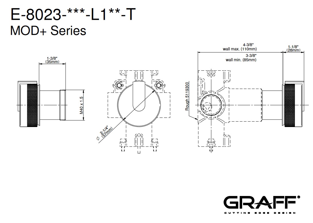 Graff MOD+ Bateria natryskowa 3-drożna podtynkowa - element zewnętrzny Chrom E-8023-R2-L1-T