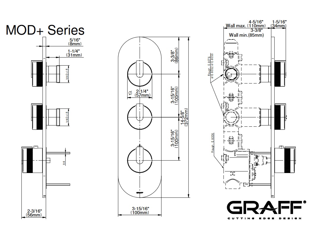 Graff MOD+ Bateria natryskowa termostatyczna 3-uchwytowa podtynkowa - element zewnętrzny Chrom E-8033-R1-L1-T
