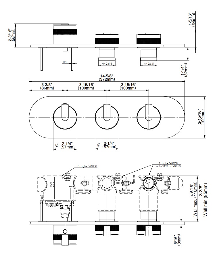 Graff MOD+ Bateria natryskowa termostatyczna 3-uchwytowa podtynkowa - element zewnętrzny Chrom E-8033H-R2-L1-T