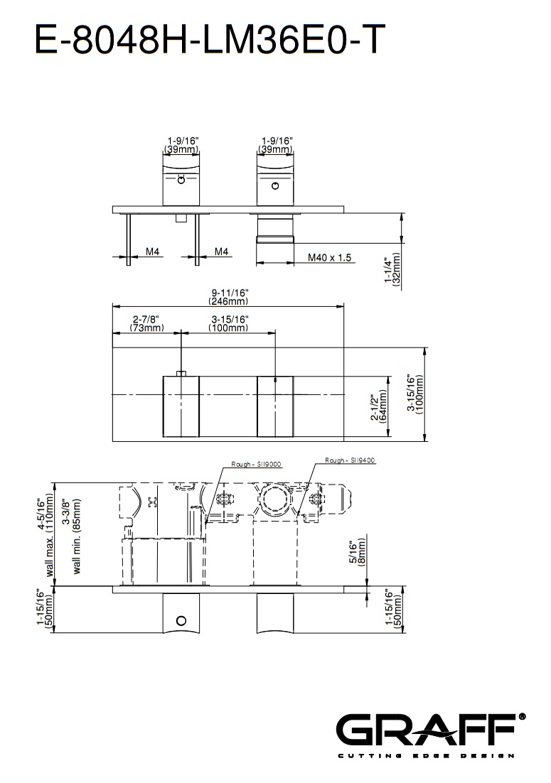 Graff Luna Bateria natryskowa podtynkowy 2-uchwytowa - element zewnętrzny Chrom E-8048H-LM36E0-T