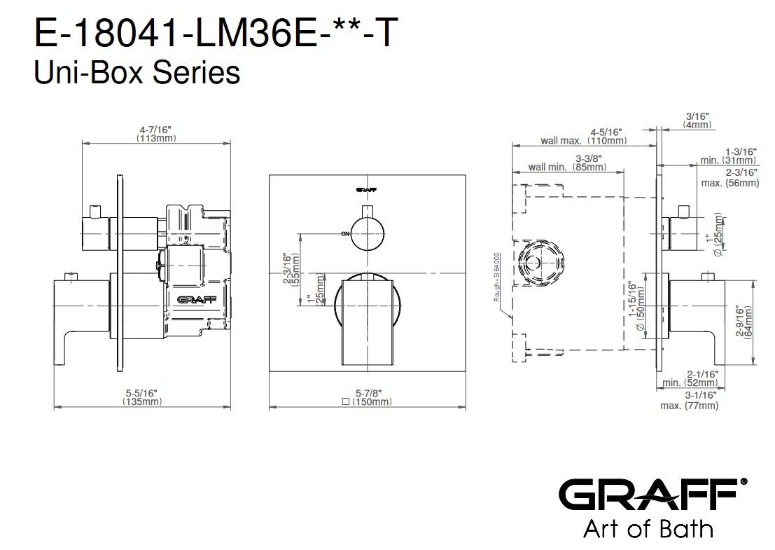 Graff Luna Zawór termostatyczny zamykający podtynkowy - element zewnętrzny Chrom E-18041-LM36E-T