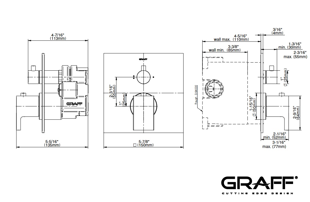 Graff Luna Zawór termostatyczny 2-drożny podtynkowy - element zewnętrzny Chrom E-18042-LM36E-T