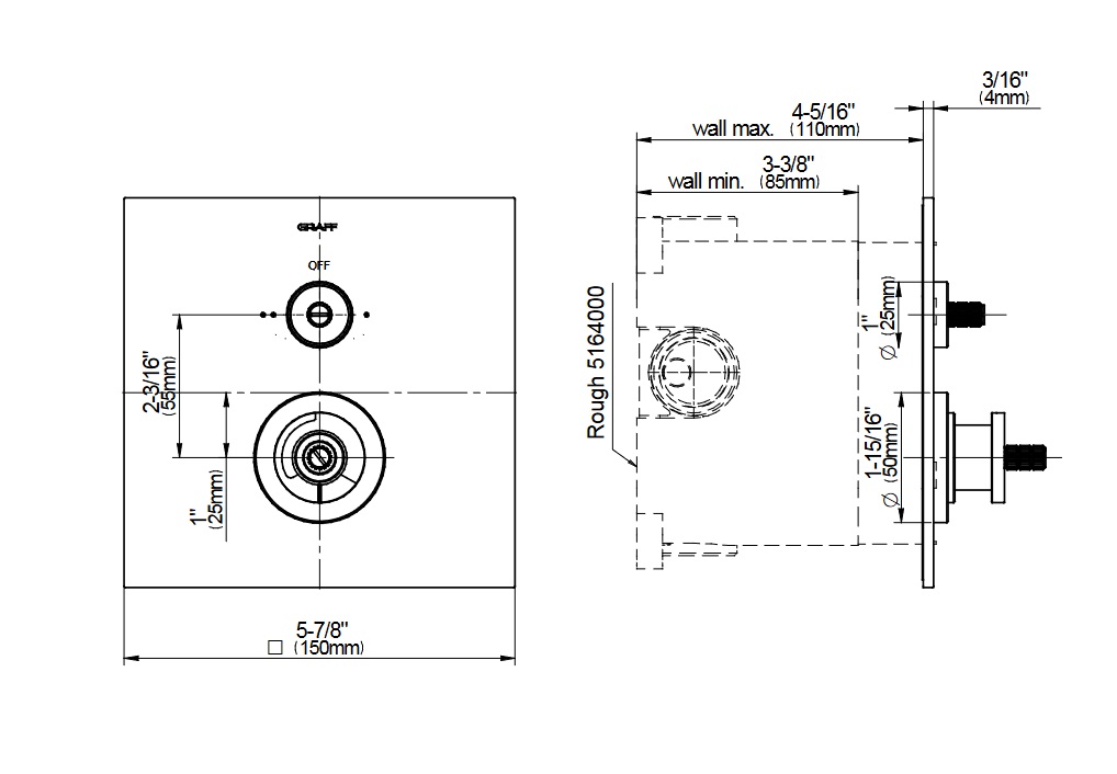 Graff Luna Zawór termostatyczny 2-drożny podtynkowy - element zewnętrzny Chrom E-18042-C14E-T